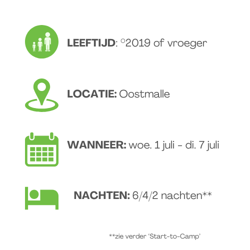 Wil je kleine spruit mee op kamp, maar is zeven dagen nog wat lang? Dan kan dat ook voor drie of vijf dagen voor kinderen die geboren zijn tussen 2019 en 2016.